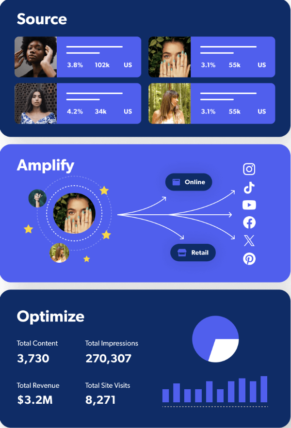 One-click distribution: An easy one-click solution to use social UGC across e-commerce and retail sites.